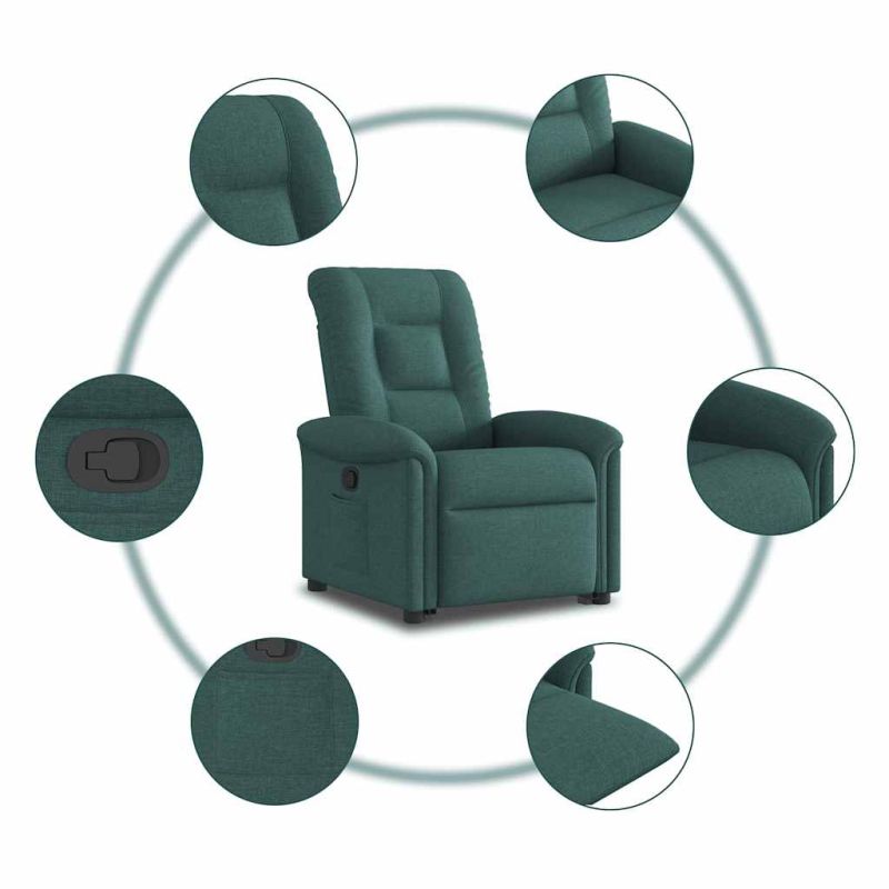 Изправящ реклайнер стол, тъмнозелен, текстил
