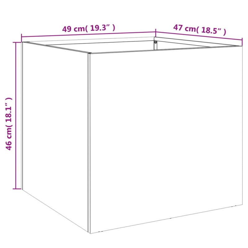 Тези плантери са чудесни за любители градинари, които искат да украсят техните градини, балкони или вътрешни дворове. Издръжлив материал: Студеновалцуваната стомана е вид нисковъглеродна стомана, произведена по метода на "студено валцуване" и обработена при близки до нормалните стайни температури. Студеновалцуваната стомана има по-гладка повърхност, по-голяма здравина и по-висока точност.Здрава рамка: Стоманената рамка на повдигнатата леха осигурява здравина и стабилност.Декоративна функция: Плантерната кутия може да побере любимите ви растения или цветя, което е идеално за декориране на вашия интериор.