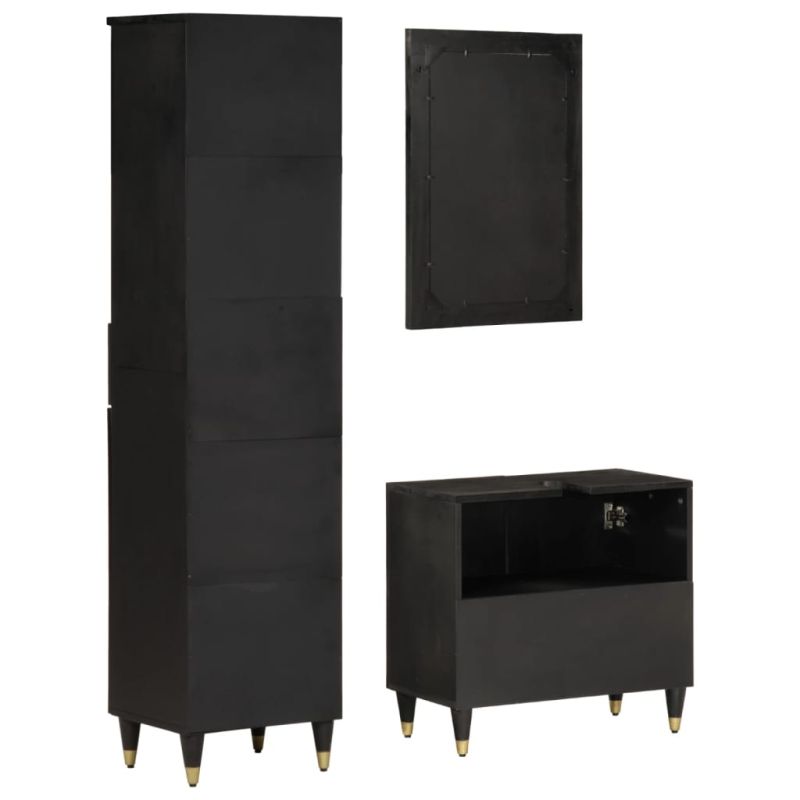 Комплект мебели за баня, 3 части, масивна мангова дървесина