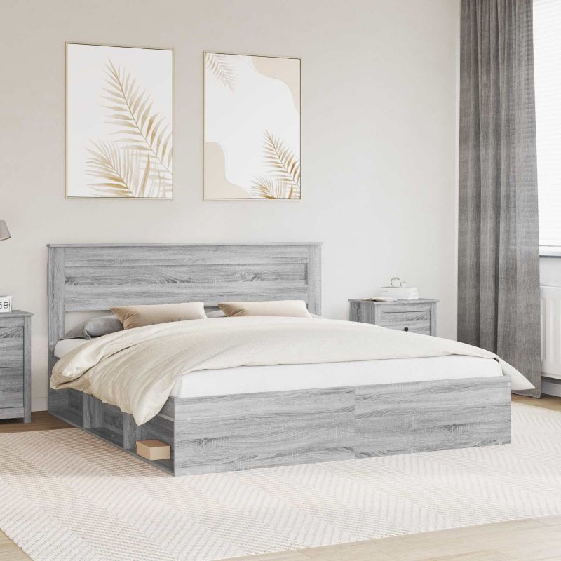 Рамка за легло Сив Сонома 200 x 200 cm Солидно борово дърво