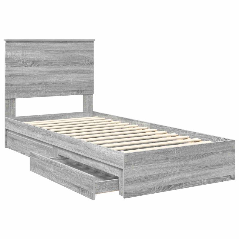 Легло с място за съхранение с таблото Сив Сонома 90 x 200 cm