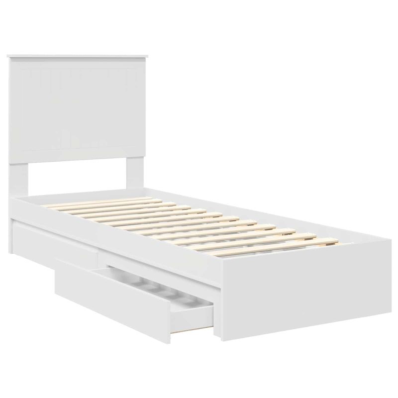 Легло с място за съхранение Бяло 75 x 190 cm Инженерно дърво