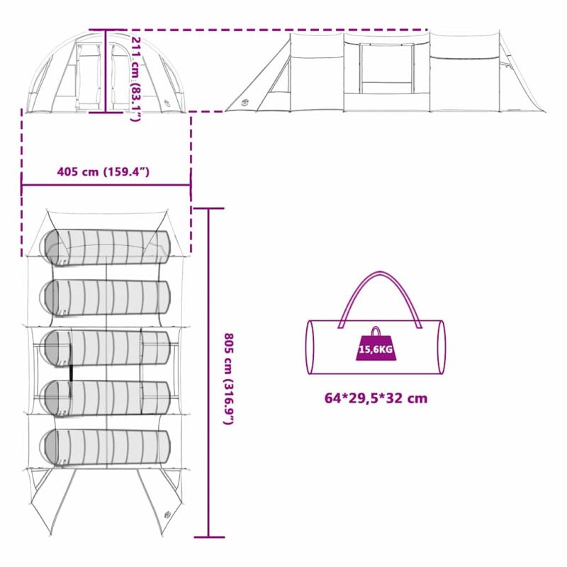 Тази модерна тунелна палатка е страхотно допълнение за всяко лятно приключение на открито. Предлага комфорт и практичност, с просторен интериор и чисти линии. Направена е от 185T полиестер с PU покритие, така че е надеждна и ви пази от лошото време. Независимо дали сте в градината, на терасата или на къмпинг, тази палатка ви кани да се потопите в прекрасното изживяване на открито. Материали: Направена от 185T полиестер с PU покритие, палатката осигурява отлична водоустойчивост и UV защита, предоставяйки безопасно място на открито за летни къмпинги. Яката стоманена рамка подкрепя тъканта, комбинирайки издръжливост и лесна поддръжка. Включени компоненти: Палатката идва с навес, комплект стълбове, чанта за носене, 8 опъващи линии и 24 stakes. Всеки компонент подобрява стабилността и улеснява ползването ѝ, от стабилна структура до бърза настройка и демонтиране. Функции /Действия /Дизайн: С практични функции като вентилационни прозорци и джоб за съхранение, палатката осигурява организирано и свежо пространство. Лесно свързване с е-порт и вградена кука за светлина увеличават функционалността, добавяйки съвременна практичност към преживяването на открито. Препоръчителни употреби: Идеална за градински и терасови сбирки по време на лятото, тази палатка е перфектна за нощувки, осигурявайки защита и комфорт. Универсалният дизайн я прави подходяща за семейни или индивидуални приключения. Грижи и поддръжка: За да запазите дълготрайността ѝ, просто я изтрийте с влажна кърпа след ползване - не е нужно агресивно почистване. Първоначалното сглобяване е по-добре да стане от двама, с помощта на анкери, което увеличава надеждността ѝ при различни условия. Предупреждение Дръжте всички източници на пламък и топлина далеч от плата на този продукт.