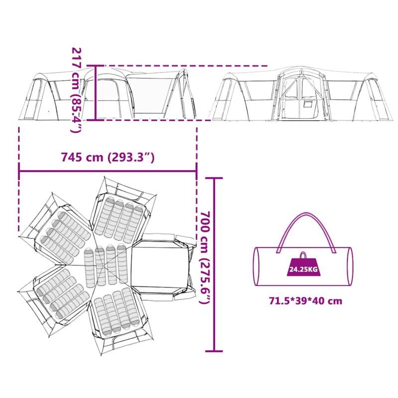Семейна палатка с покрив Синьо и сиво 745 x 700 x 217 см