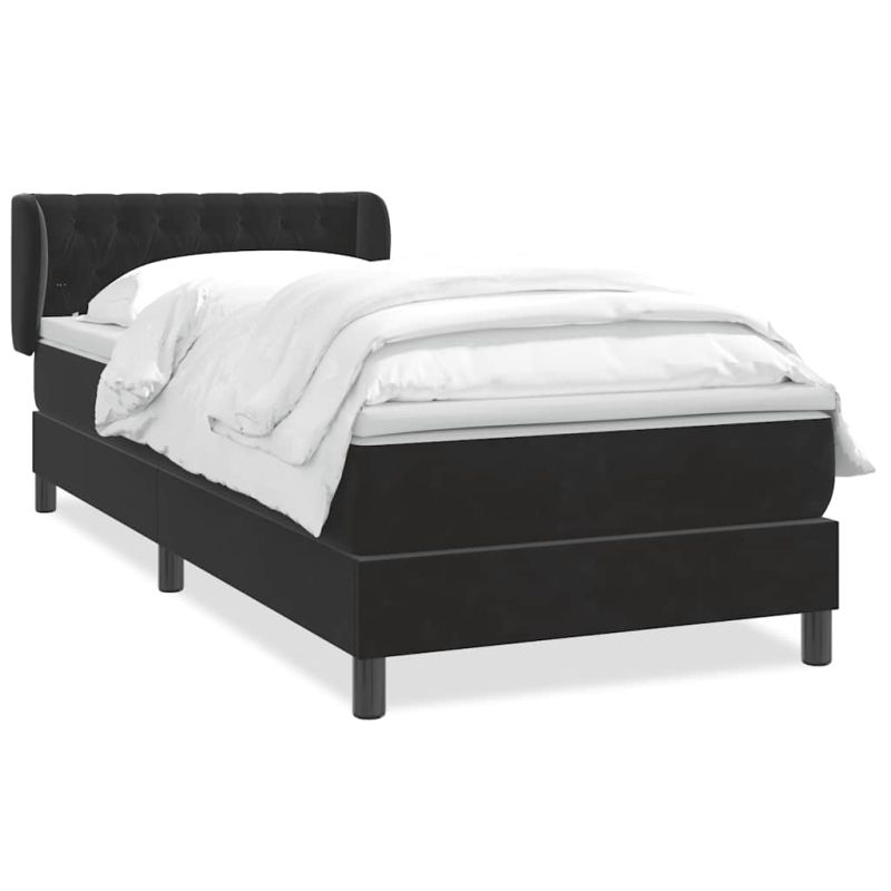 Боксспринг легло с матрак, черно, 90x210 см, кадифе