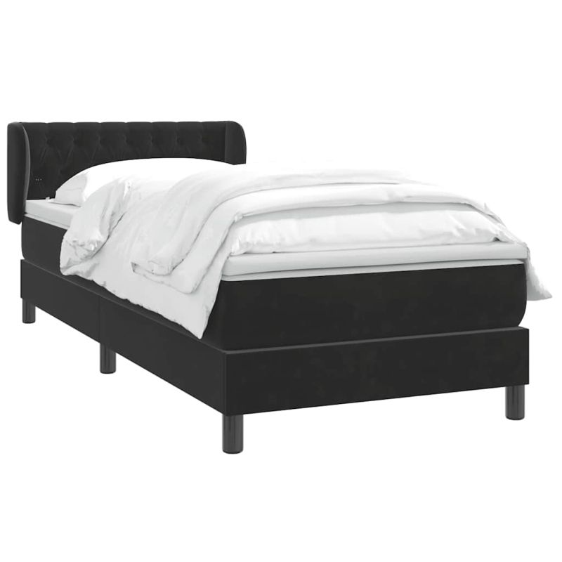 Боксспринг легло с матрак, черно, 100x220 см, кадифе
