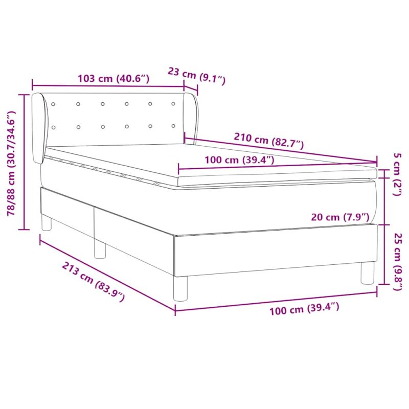 Боксспринг легло с матрак, тъмносиво, 100x210 см, кадифе