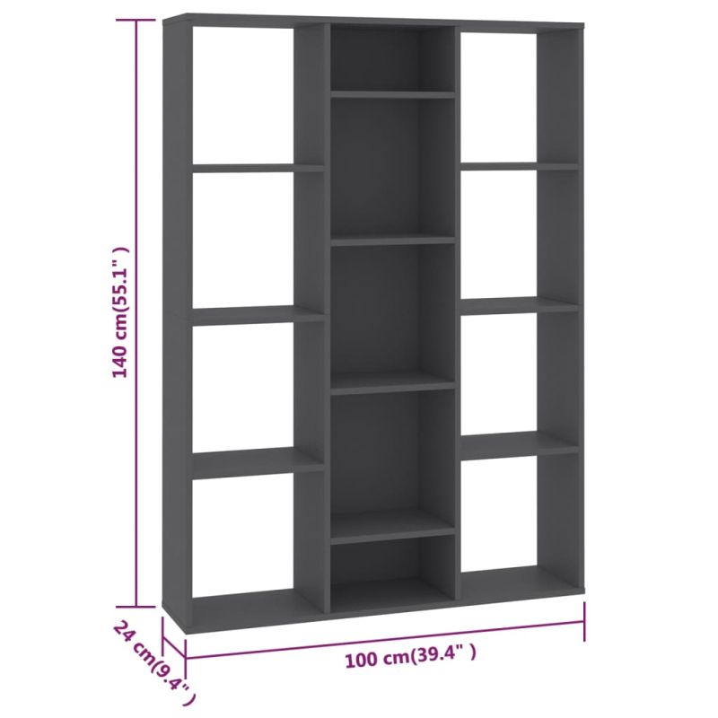 Разделител за стая/библиотека, сив, 100x24x140 см, ПДЧ