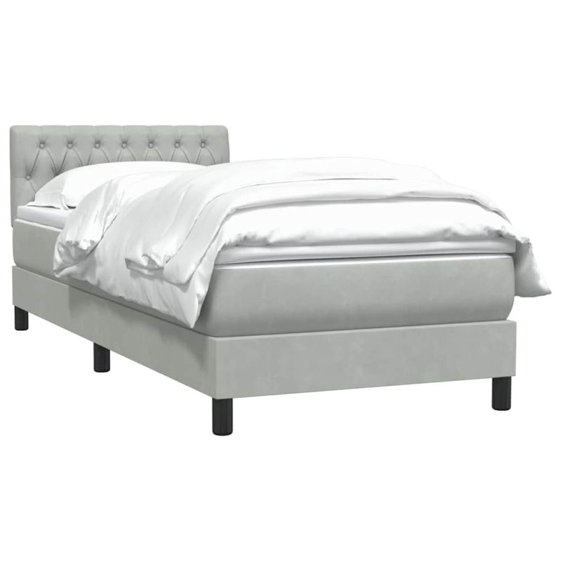Боксспринг легло с матрак, светлосиво, 90x210 см, кадифе