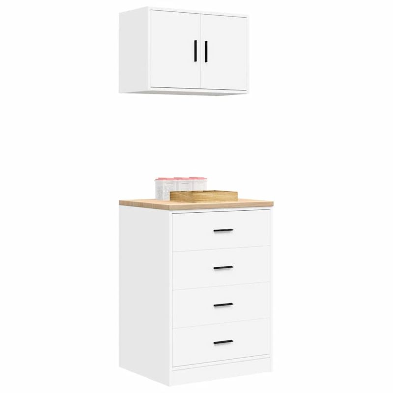 гаражни шкафове, 2 бр, бели, инженерно дърво
