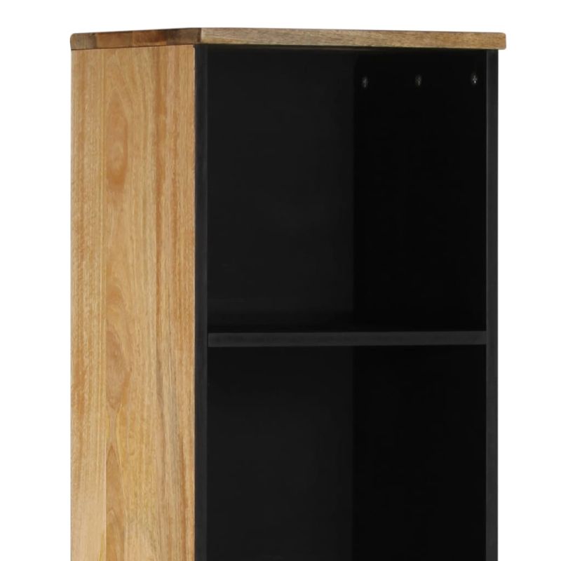 Този шкаф за баня е чудесен избор за вашата баня, като я прави подредена и организирана! Масивна мангова дървесина: Масивната дървесина от манго е здрава тропическа дървесина, от която се произвеждат здрави мебели. Красивите ѝ дървесни шарки правят всяка мебел малко по-различна от следващите. Изработен от масивно мангово дърво, шкафът за баня е издръжлив и стабилен.Достатъчно място за съхранение: Този шкаф за баня предлага достатъчно място за съхранение, за да държите най-важните си вещи добре подредени и на една ръка разстояние.Гъвкава врата: Можете да инсталирате вратата или от лявата, или от дясната страна според собствените си нужди.Здрави крака: Железните крака добавят здравината и стабилността на шкафа за баня. Внимание:За да предотвратите преобръщане, този продукт трябва да се използва с предоставеното устройство за закрепване на стена.