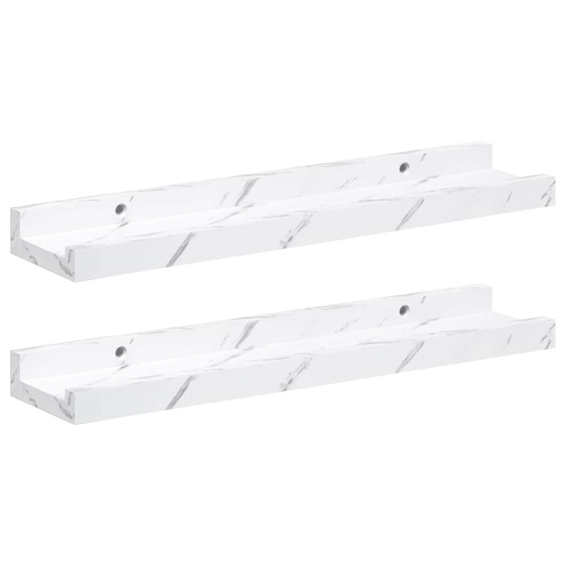 Стенен рафт 2 pcs Бял мрамор 40 x 9 x 3 cm Инженерно дърво