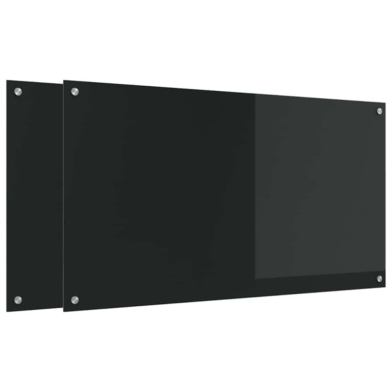Кухненски заден панел 2 pcs Черно 110 x 60 cm закалено стъкло
