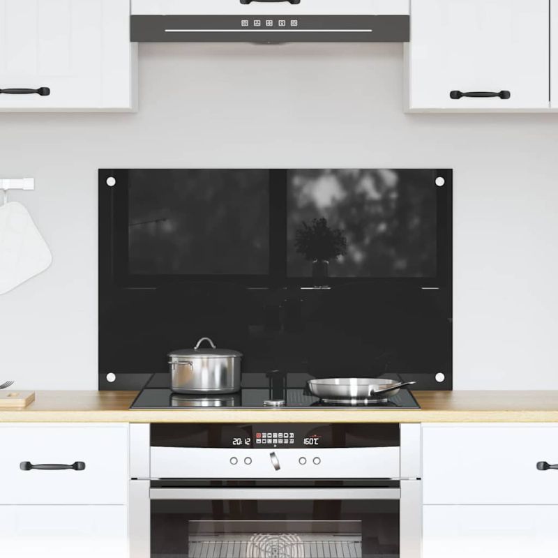 Кухненски заден панел Черно 80 x 50 cm закалено стъкло