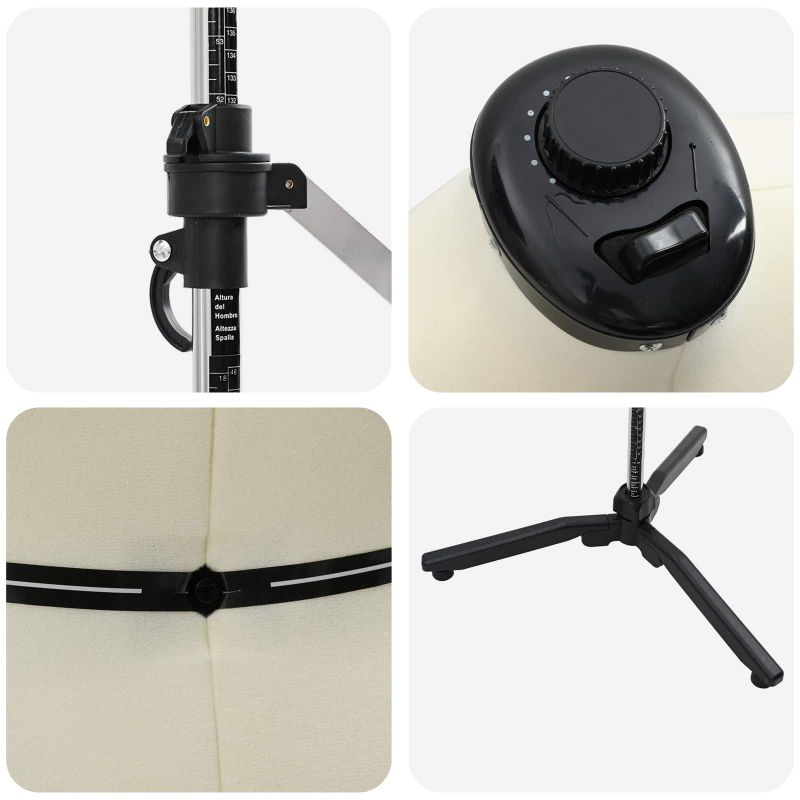 Тази модерна регулируема форма на облекло за жени предлага безкрайни възможности за дизайнери, шивачи и модни ентусиасти. Меката кадифена текстура добавя лукс и функционалност, идеална за изработка на персонализирани облекла. С практични функции и елегантен дизайн, тя просто пасва на всяка работилница, предлагайки динамичен и многофункционален помощник за шев на облекла. Премиум кадифен материал: Изработена от качествен кадифе, формата добавя стил и елегантност. Меката текстура приятно се усеща на кожата и улеснява шевните процеси. Регулируеми функции: С височина от 95 до 160 см и 360° завъртане, формата се адаптира към различни тела и стилове. Лесният механизъм за регулиране позволява бърза промяна, що се отнася до различни облекла. Интегрирана възглавница за игли: Вратът разполага с удобна възглавница за игли, гарантирайки, че инструментите ви винаги са под ръка за творчество без прекъсвания. Стабилно и устойчиво основание: Със своята стабилна основа, формата осигурява надеждна подкрепа. Устойчивостта й осигурява дълготрайна полза дори при активна употреба. Лесна поддръжка: Просто избърсвайте с кърпа, за да поддержате формата в добро състояние. Лесните инструкции за поддръжка запазват работното пространство подредено.