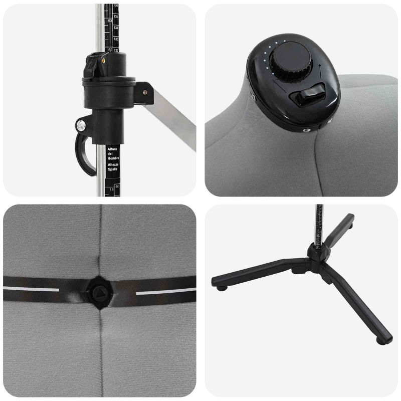 Тази модерна регулируема форма на облекло за жени предлага безкрайни възможности за дизайнери, шивачи и модни ентусиасти. Меката кадифена текстура добавя лукс и функционалност, идеална за изработка на персонализирани облекла. С практични функции и елегантен дизайн, тя просто пасва на всяка работилница, предлагайки динамичен и многофункционален помощник за шев на облекла. Премиум кадифен материал: Изработена от качествен кадифе, формата добавя стил и елегантност. Меката текстура приятно се усеща на кожата и улеснява шевните процеси. Регулируеми функции: С височина от 95 до 160 см и 360° завъртане, формата се адаптира към различни тела и стилове. Лесният механизъм за регулиране позволява бърза промяна, що се отнася до различни облекла. Интегрирана възглавница за игли: Вратът разполага с удобна възглавница за игли, гарантирайки, че инструментите ви винаги са под ръка за творчество без прекъсвания. Стабилно и устойчиво основание: Със своята стабилна основа, формата осигурява надеждна подкрепа. Устойчивостта й осигурява дълготрайна полза дори при активна употреба. Лесна поддръжка: Просто избърсвайте с кърпа, за да поддержате формата в добро състояние. Лесните инструкции за поддръжка запазват работното пространство подредено.