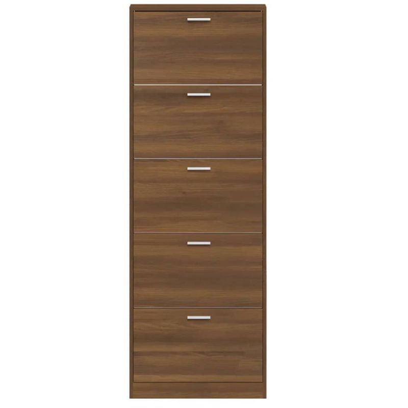 Този шкаф за обувки с модерен и стилен дизайн е отлична мебел за организирано съхранение на вашите обувки. Подходящ е за антре, фоайе, хол, спалня и други места, където желаете да го поставите. Издържлив материал: Инженерната дървесина е с изключително качество с гладка повърхност и също така се отличава със здравина, стабилност и устойчивост на влага.Достатъчно място за съхранение: Тази етажерка за обувки разполага с 5 чекмеджета, осигуряващи достатъчно място, където да държите обувките си подръка и добре подредени.Дизайн с падащо чекмедже: Със своя дизайн с падащо чекмедже този шкаф за обувки се отваря и затваря лесно. Забележка:Всеки продукт се доставя с ръководство за сглобяване в кашона за лесно сглобяване. Внимание:За да се предотврати преобръщане, този продукт трябва да се използва с предоставената приставка за стена