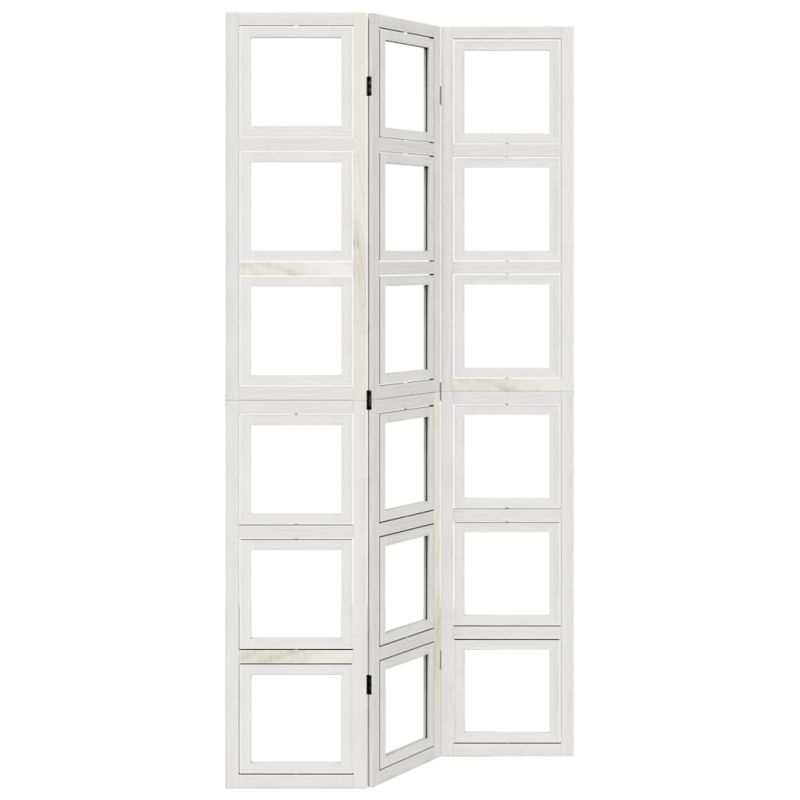 Разделител за стая, 3 панела, бял, дърво пауловния масив