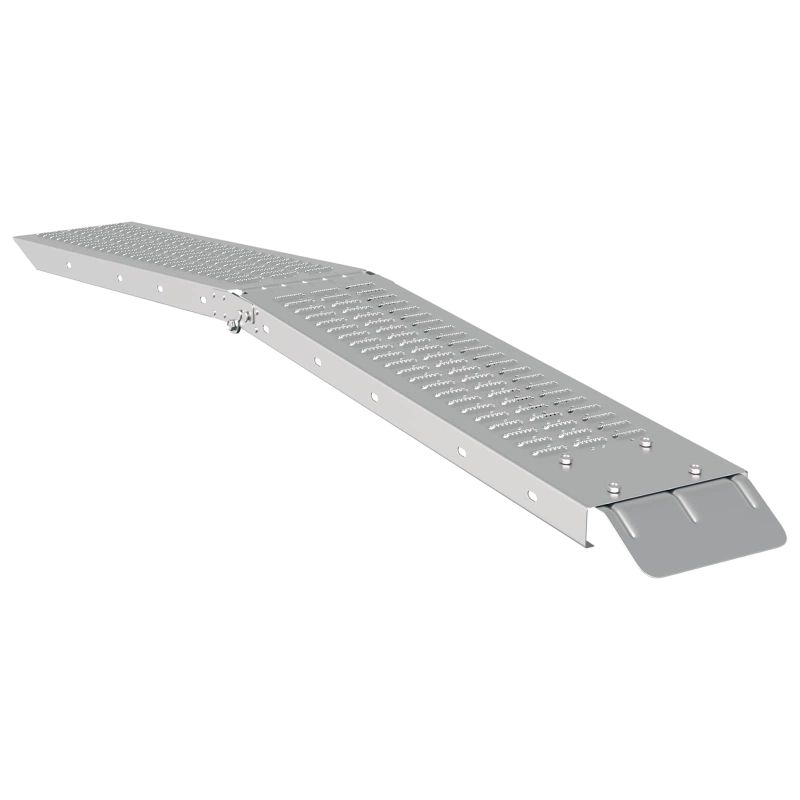 Тази рампа за мотори е практично и ефективно решение за всички, които редовно транспортират превозни средства или оборудване. С елегантния си сребрист вид и индустриален дизайн, тя се вписва идеално в гаражи или работилници. Изработена е от галванизирана стомана, което ѝ дава отлична издръжливост, особено през летните месеци. Сгъваемата структура я прави перфектна за онези, които искат удобство при съхранение и транспорт. Издръжлива галванизирана стомана: Тази рампа е много здрава и устойчива на износване. Конструкцията ѝ позволява да издържа на тежки натоварвания, което я прави надеждно решение за често зареждане на превозни средства. Стоманата не само добавя сила, но и придава модерен вид, който остава привлекателен дори след дълго време на открито. Практичен сгъваем дизайн: Рампа с уникален сгъваем механизъм, който лесно се прилага, позволявайки компактно съхранение и безпроблемна мобилност. Сгъваемият дизайн я прави много удобна за тези, които я носят по пътя или я съхраняват в гаража. Тази функция е важна за хора, които често сменят местата си. Сигурна несъздаваща хлъзгане повърхност: Несъздаващата хлъзгане повърхност на рампата осигурява отлична сцепление, предпазвайки от хлъзгане при зареждане, дори и в дъжд. Това предоставя допълнителна сигурност и намалява риска, като прави операцията по зареждане по-безопасна за вас и превозното средство. Иновативна ръчно профилована опора: Рампата разполага с профилирани ръбове, които добавят стабилност и сила при зареждане. Тази характеристика подобрява носещата способност, разпределяйки теглото равномерно, за да избегне вибрации или клатене, което е особено важно при работа с тежки вещи. Лесно поддържане и обслужване: Държането на рампата в добро състояние е просто - изисква само редовно избърсване с кърпа, за да се свали натрупаната прах. Това улеснява поддържането ѝ годна за употреба дълго време.