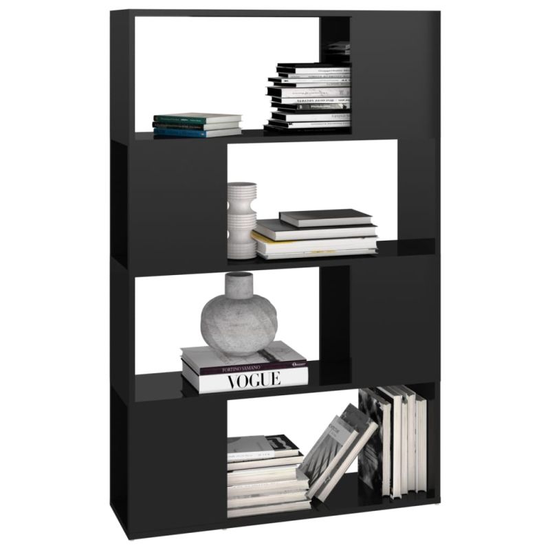 Библиотека/разделител за стая, черен гланц, 80x24x124,5 см