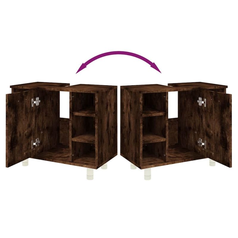 Шкаф за баня, опушен дъб, 60x32x53,5 см, инженерно дърво