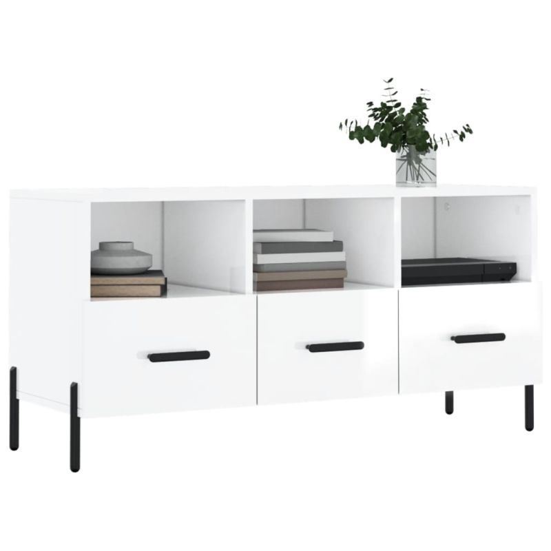 ТВ шкаф, бял гланц, 102x36x50 см, инженерно дърво