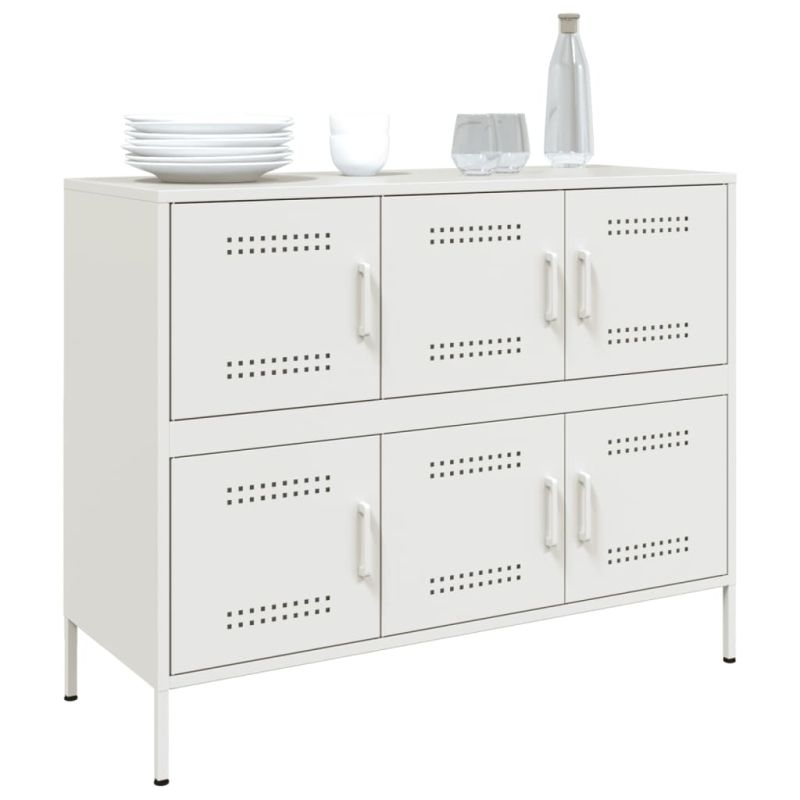 Този здрав бюфет с индустриален стил е непреходно и модерно допълнение към вашата всекидневна или спалня. Стабилен материал: Рамката на шкафа е изработена от студеновалцувана стомана. Студеновалцуваната стомана е вид нисковъглеродна стомана, произведена по метода на "студено валцуване" и обработена при близки до нормалните стайни температури. Студеновалцуваната стомана има по-гладка повърхност, по-голяма здравина и по-висока точност.Достатъчно място за съхранение: Този бюфет осигурява достатъчно място за съхранение на вашите списания, книги, DVD дискове, дистанционно управление и други дребни предмети, добре организирани и достъпни.Регулируеми винтови крачета: Този шкаф за съхранение е снабден с четири регулируеми винтови крака за компенсиране на неравните подове, осигурявайки стабилност и баланс.Практична врата: Вратата помага за поддържането на чисто и организирано пространство, като прикрива дребните неща и безпорядъка зад тях.Лесен за почистване: Металният шкаф се почиства лесно с влажна кърпа и изисква по-малко поддръжка. Внимание:За да предотвратите преобръщане, този продукт трябва да се използва с предоставеното устройство за закрепване на стена.