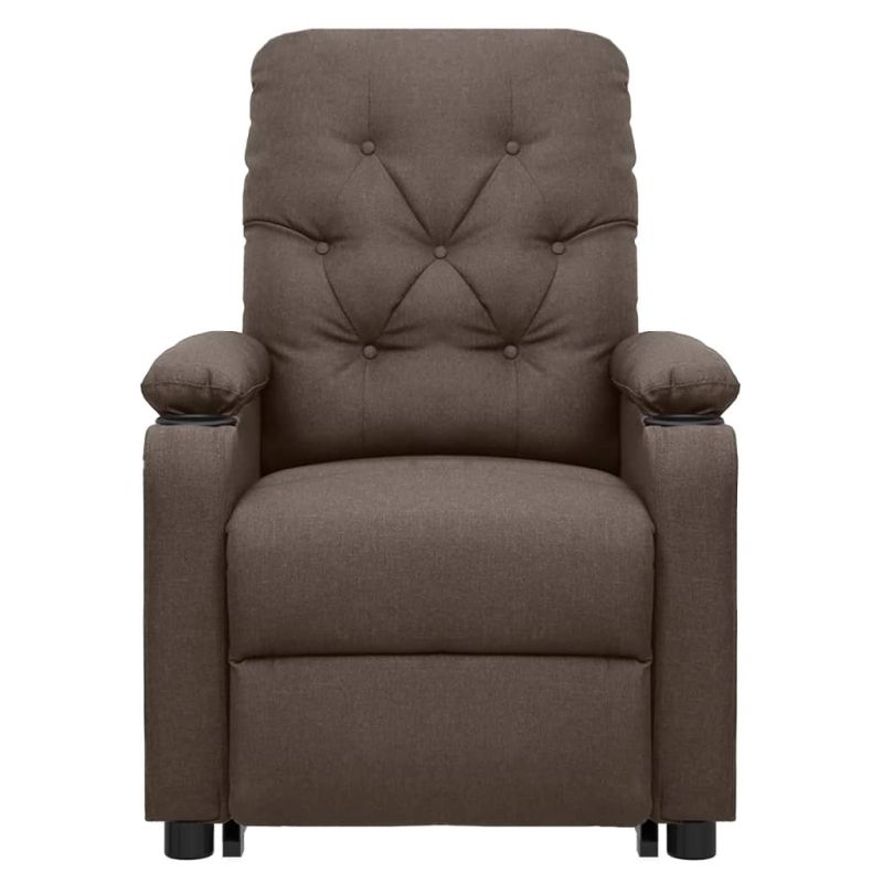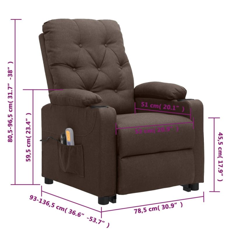 Облегнете се и се отпуснете в този изключително комфортен изправящ масажен стол! Функция за ръчно накланяне: Накланящият се стол е специално проектиран с 3 позиции на наклон, така че да можете да регулирате ръчно облегалката и поставката за крака според вашето удобство.Функция за повдигане: Този стол реклайнер е оборудван с електрически двигател с функция за повдигане. Благодарение на ръчното дистанционно управление с 2 бутона и функцията, която избутва целия стол нагоре, можете лесно да се изправите, без да натоварвате гърба и коленете си.Функция за вибрация: Представените 6 масажни точки ви позволяват да изпитате по-целенасочен масаж. Освен това включеното ръчно управление ви позволява да избирате различни програми за масаж. Функцията за масаж се захранва от USB конектора, но сертифицираният 5V USB източник на захранване не е включен.Удобно седене: Дебело подплатената седалка, облегалката и широките подлакътници, покрити с текстил, осигуряват уютно и топло усещане, което ви кара да се чувствате като в прегръдка, докато седите. Тъканта се отличава със семпъл и изчистен вид и е дишаща и издръжлива.Здрава и стабилна рамка: Рамката, изработена от дърво и метал, осигурява здрава структура и стабилност. Този накланящ се фотьойл е удобен и издръжлив. Този уред не е предназначен за употреба от лица, сред които и деца, с намалени физически, сензорни или ментални възможности или липса на опит и знания, освен ако не са под наблюдение или не са им дадени инструкции по отношение използването на уреда от лице, отговорно за тяхната безопасност. Този продукт не е играчка. Не позволявайте на децата трябва да си играят с уреда. Този продукт се захранва с DC 5V, но сертифицираният 5V USB източник на захранване не е включен в комплекта. По-високото напрежение може да доведе до прегряване на устройството и да доведе до повреда на устройството и потенциален риск от прегряване и пожар.