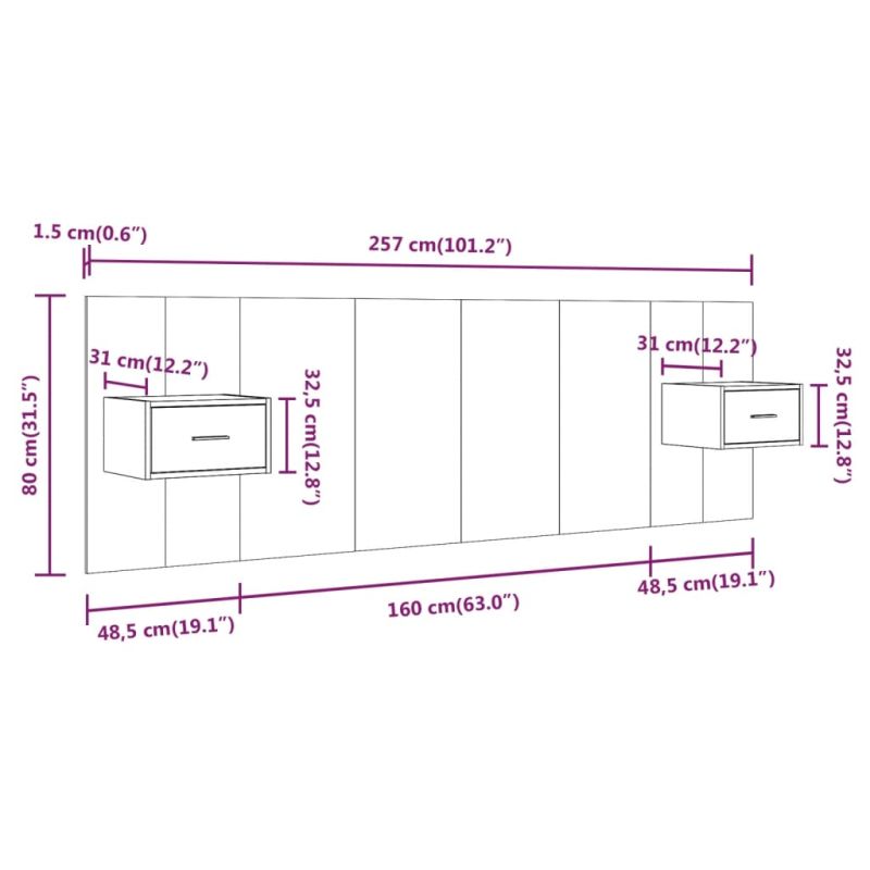 Здравата табла за легло с шкафчета и класически дизайн придава завършен вид на рамката на леглото и е подходяща за всяка спалня. Издържлив материал: Инженерната дървесина е с изключително качество с гладка повърхност и също така се отличава със здравина, стабилност и устойчивост на влага.Дизайн за стенен монтаж: Окачените нощни шкафчета и таблата могат да бъдат монтирани на стена. По този начин можете да увеличите максимално площта на пода и да поддържате пространството подредено.Място за съхранение: Нощното шкафче разполага с просторно място за съхранение, което ви позволява да държите нещата си организирани. Внимание:Винт(ове) и щепсел(и) за вътрешността на стената не са включени. Търсете и използвайте винт(ове) и дюбел(и), подходящи за вашите стени. Ако не сте сигурни, потърсете професионална помощ. Прочетете и следвайте внимателно всяка стъпка от инструкциите.