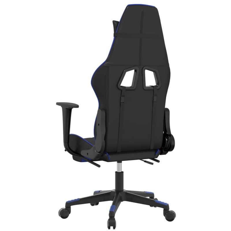 Гейминг стол с опора, черно и синьо, изкуствена кожа