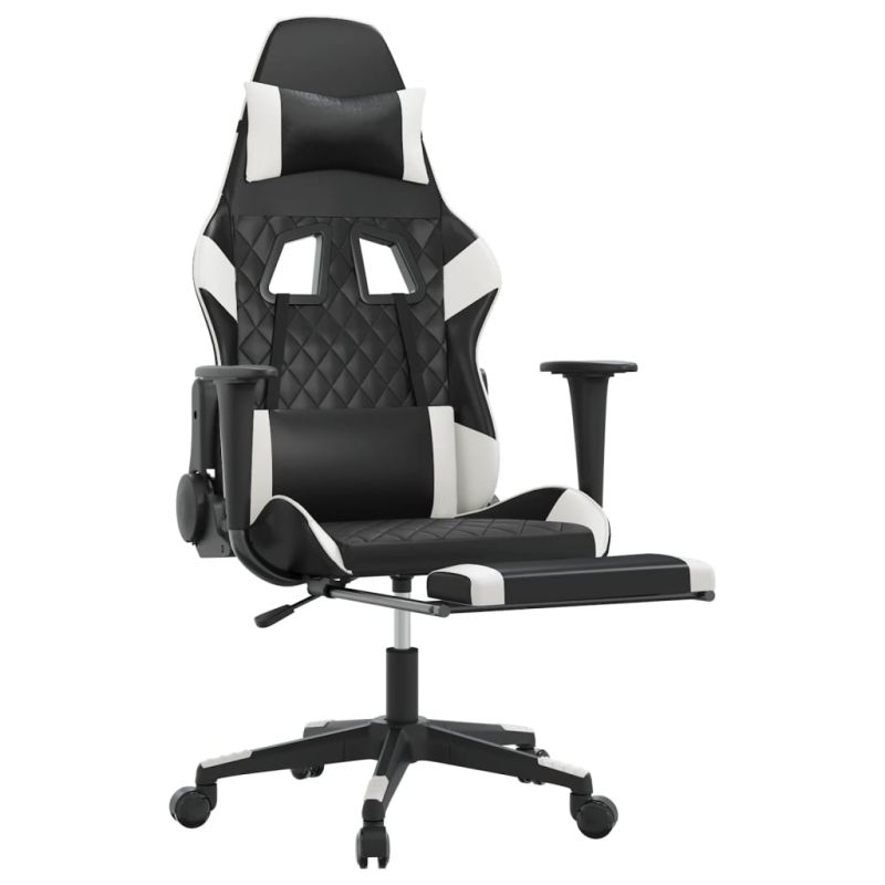 Гейминг стол с опора за крака, черно и бяло, изкуствена кожа