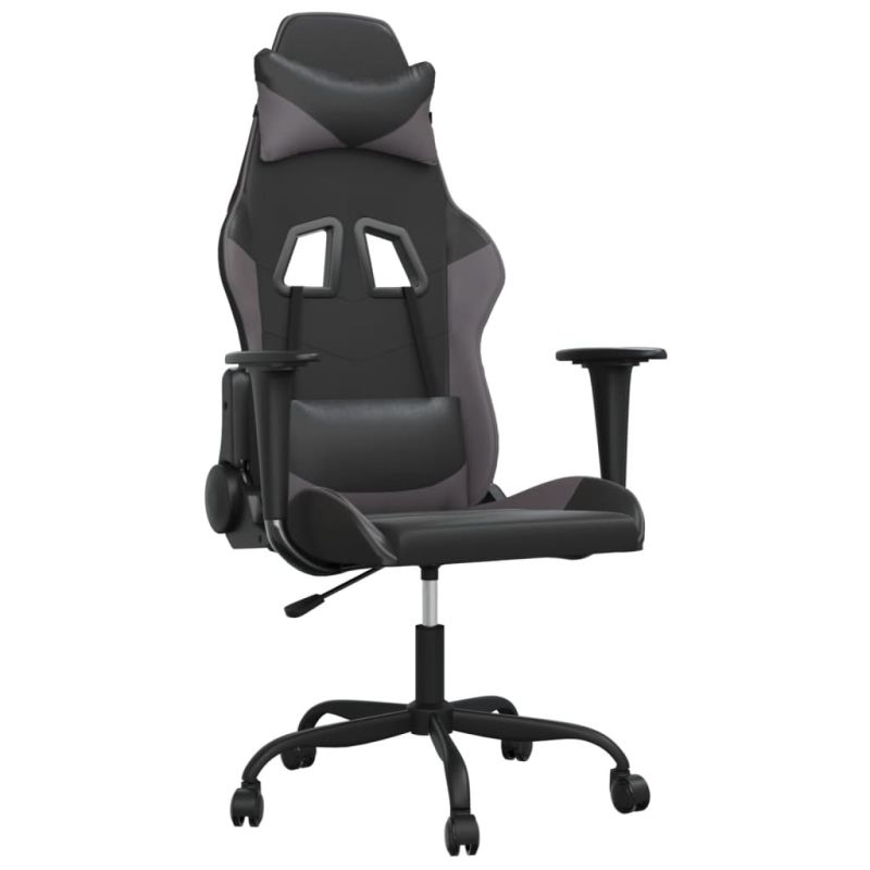 Масажен гейминг стол, черно и сиво, изкуствена кожа