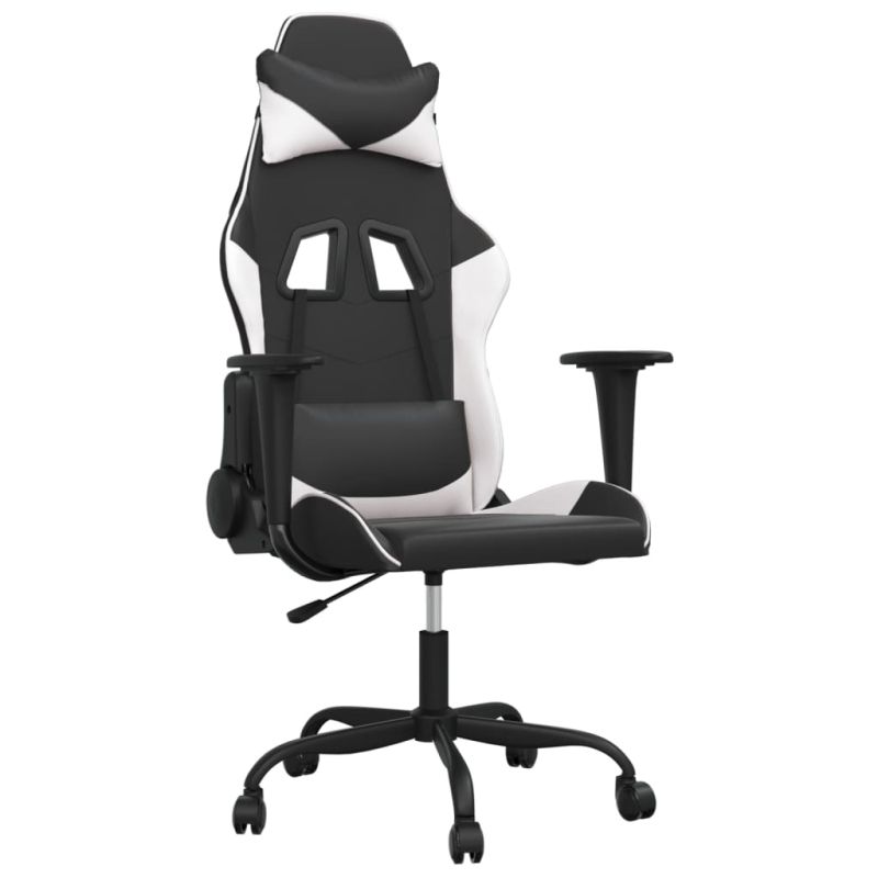Масажен гейминг стол, черно и бяло, изкуствена кожа