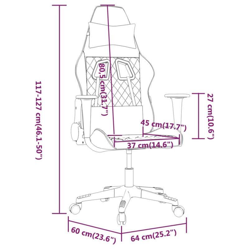 Насладете се на седенето в този уникален геймърски стол и подобрете геймърското си изживяване с комфорт! Издържлива изкуствена кожа: Първокласната изкуствена кожа е изключително издръжлив материал. Устойчива е на петна, което я прави лесна за почистване с влажна кърпа. Гладката повърхност също така придава луксозен вид и красотата на истинската кожа.Функция за масаж: Точката за масаж във възглавницата за кръста ефективно облекчава умората ви и ви прави по-спокойни по време на работа.Регулируема облегалка и височина: Той е специално проектиран с функция за накланяне, така че да можете да регулирате облегалката по вкуса си. Използвайте лоста, за да регулирате височината на седалката си по ваш вкус.Удобен дизайн: Въртящият се на 360 градуса дизайн позволява по-широк обхват на движение. Освен това е удобно да се придвижвате с въртящите се колелца.Здрава и стабилна рамка: Рамките от метал и шперплат осигуряват здравина и стабилност. Забележка:Всеки продукт се доставя с ръководство за сглобяване в кашона за лесно сглобяване.Продуктът има USB конектор, но не е включен сертифициран източник на захранване от 5V USB. Съобразете се с риска от открит огън и други източници на силна топлина в близост до продукта. Максимално 110 кг на седалка. Този продукт се захранва от DC 5V, но сертифицираният USB източник на захранване 5V не е включен в комплекта. По-високото напрежение може да доведе до прегряване на устройството и да доведе до повреда на устройството и потенциален риск от прегряване и пожар.