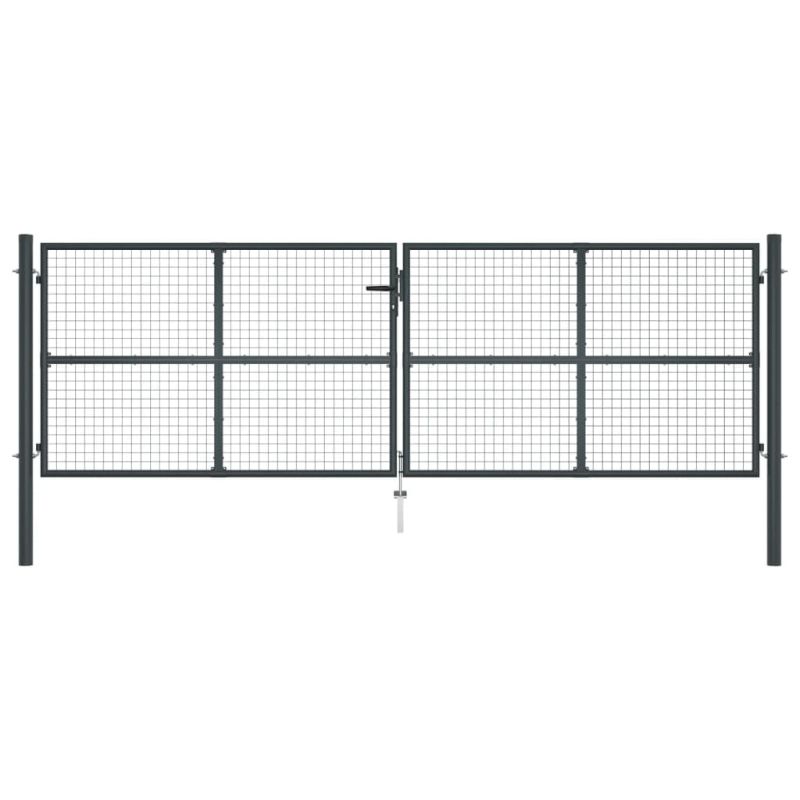 Отличаваща се с високо ниво на стабилност и издръжливост, тази дворна порта може да се използва като практичен и модерен вход към вашата градина, вътрешен двор или тераса! Дворната врата е с перфектна изработка и е произведена от прахово боядисана поцинкована стомана, която е устойчива на ръжда и образува здрава конструкция. Тя има два странични стълба с шарнирни болтове за лесен монтаж. Също така има и долно сюрме, което гарантира доброто заключване на вратата. Доставката включва и три ключа.