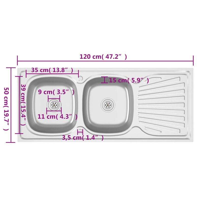 Кухненска мивка с две корита, сребриста, 1200x500x155 мм, инокс