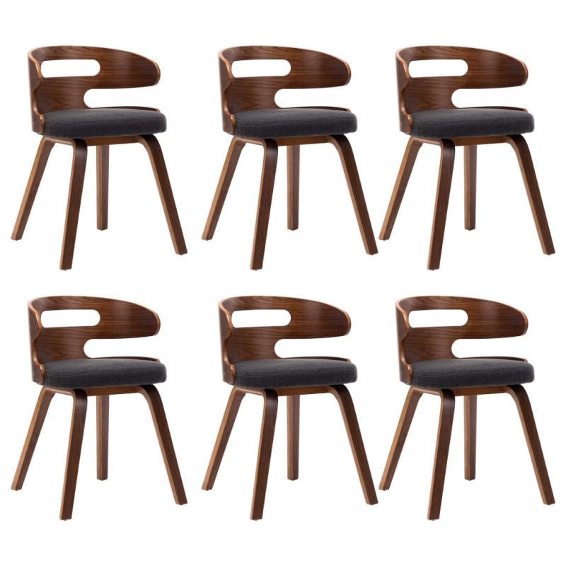 Трапезни столове, 6 бр, тъмносиви, извито дърво и текстил