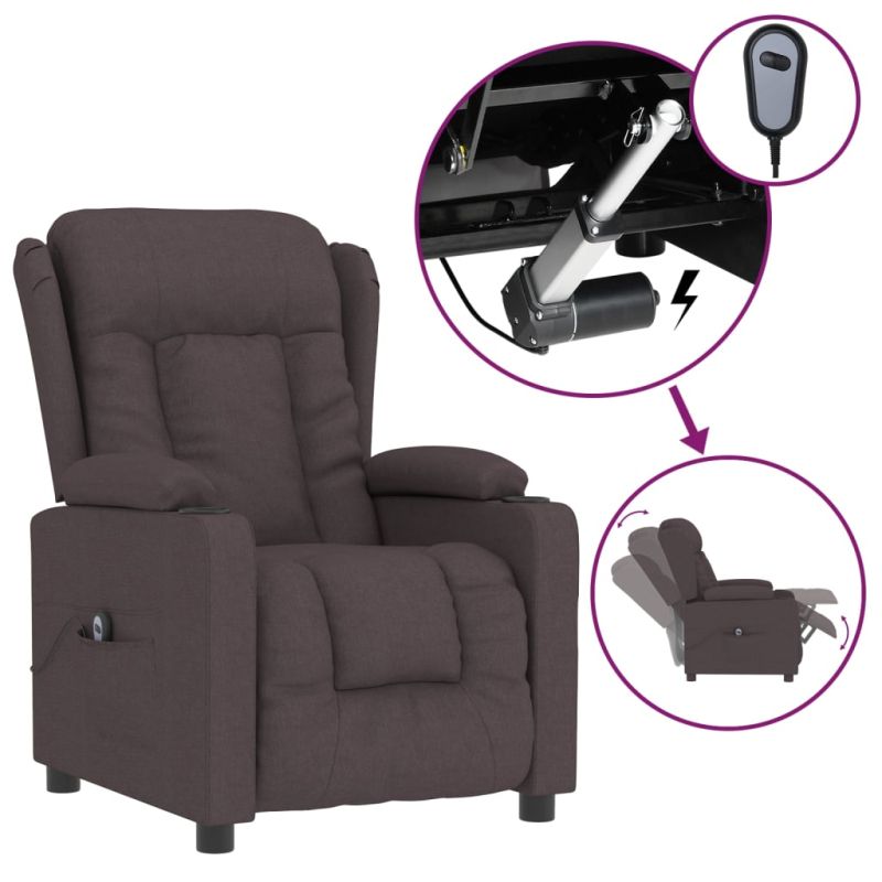 Електрически реклайнер стол, тъмнокафяв, текстил