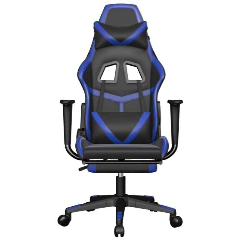 Гейминг стол с опора, черно и синьо, изкуствена кожа