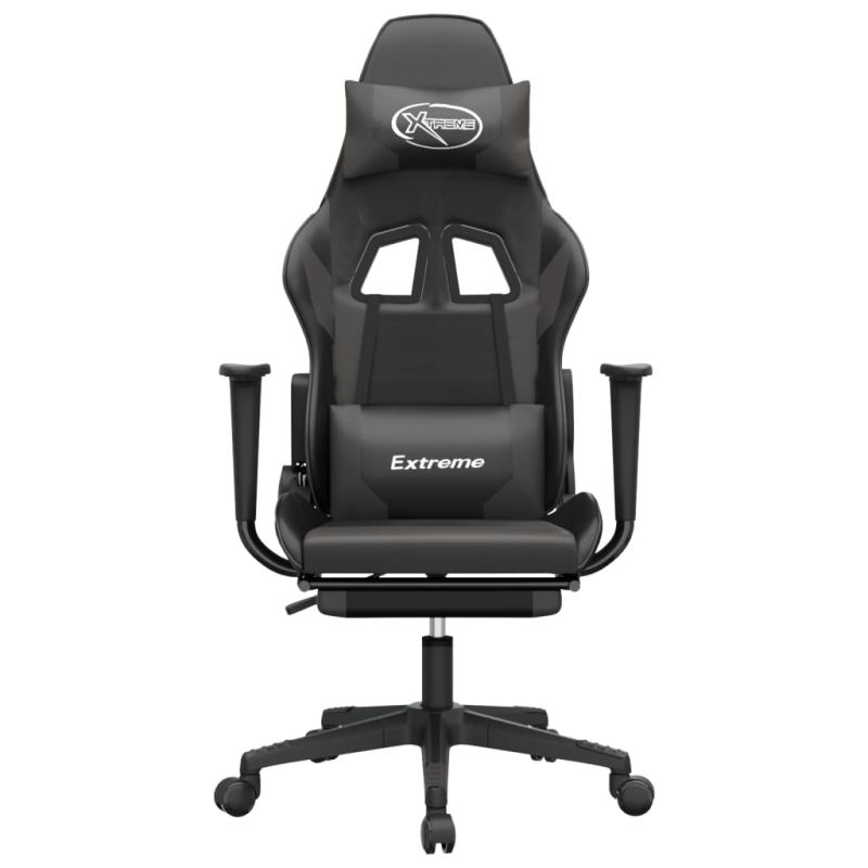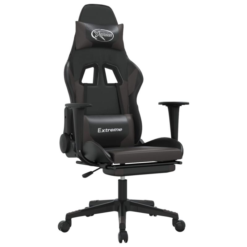 Гейминг стол с опора за крака, черно и cиво, изкуствена кожа
