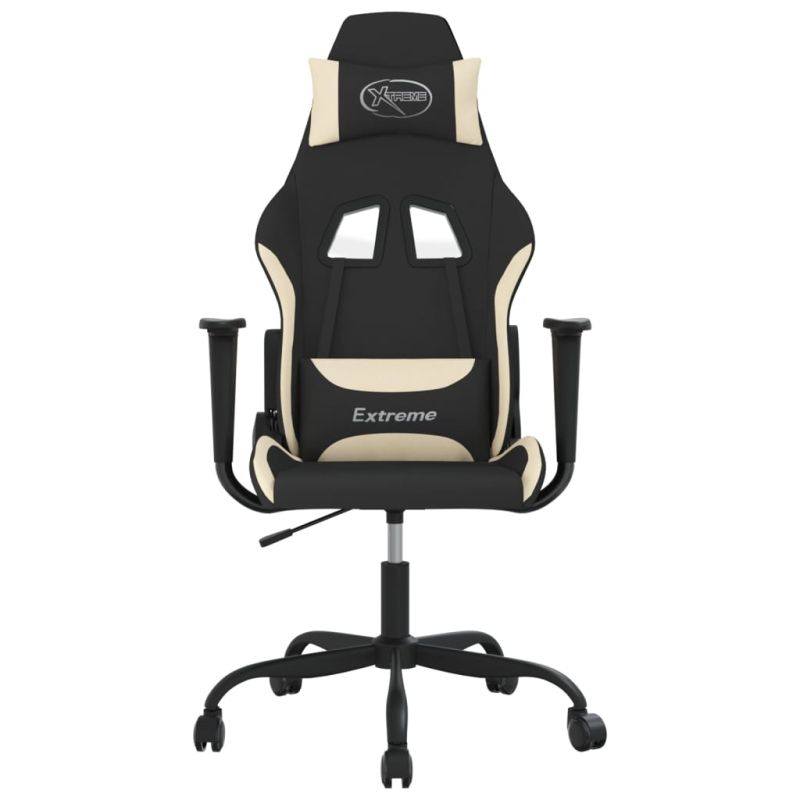 Гейминг стол с опора за крака, черно и кремаво, плат