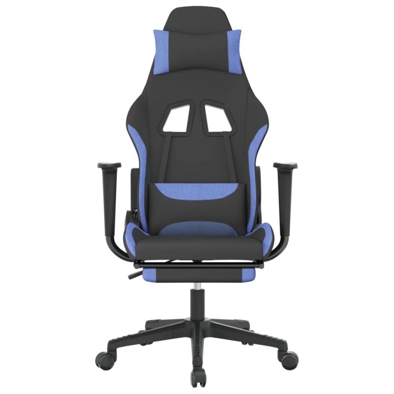 Гейминг стол с опора за крака, черно и cин, плат