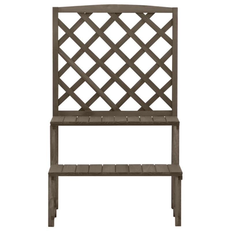 Поставете любимите си цветя или растения на този градински цветарник от чамова дървесина масив, добавящ красота към сегашното ви пространство! Тази етажерка за растения, изработена от масивна чамова дървесина, е стабилна и подходяща за употреба на открито. Разполага с два рафта на различни височини с достатъчно място за поставяне на растения в саксии и градински украси. Стълбовидният дизайн красиво излага цветята ви на показ и им помага да получат повече слънчева светлина и да растат по-добре. Освен това решетката предлага отлична опора за увивни растения.