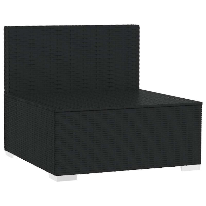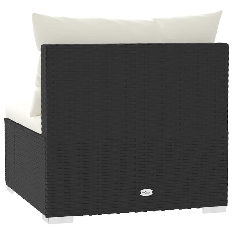 Градински среден диван с възглавници черен полиратан
