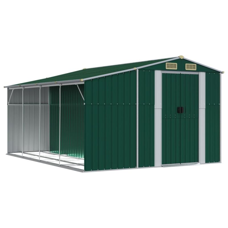 Градинска барака, зелена, 277x365,5x179 см, поцинкована стомана