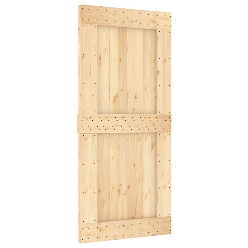 Плъзгаща врата с монтажни части, 95x210 см, борово дърво масив