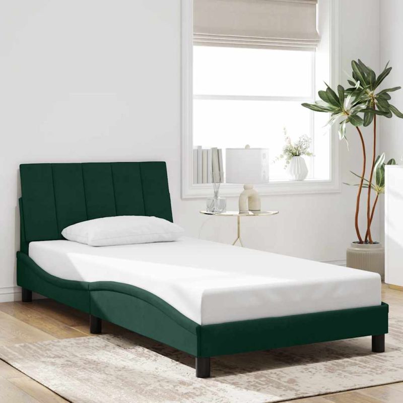 Рамка за легло без матрак Hanko, тъмнозелена, 100x200 см, кадифе