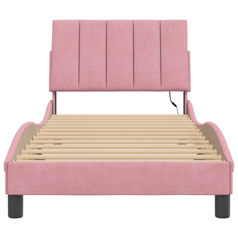 Рамка за легло с LED осветление без матрак Hanko, розова, 90x200 см, кадифе