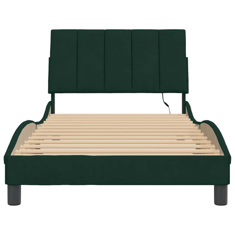 Рамка за легло с LED осветление без матрак Hanko, тъмнозелена, 100x200см, кадифе