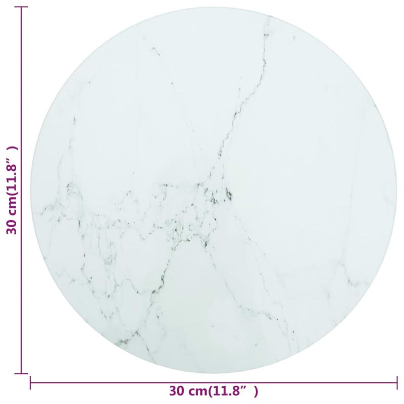Плот за маса бял Ø30x0,8 см закалено стъкло с мраморен дизайн
